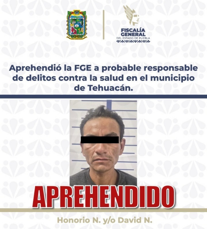 La Fiscalía General del Estado dio cumplimiento a la orden de aprehensión en contra de Honorio N. y/o David N., alias “El Flaco”, de 33 años de edad, por su probable responsabilidad en delitos contra la salud en su modalidad de posesión simple del narcótico conocido como metanfetamina, ocurrido en el municipio de Tehuacán, Puebla.