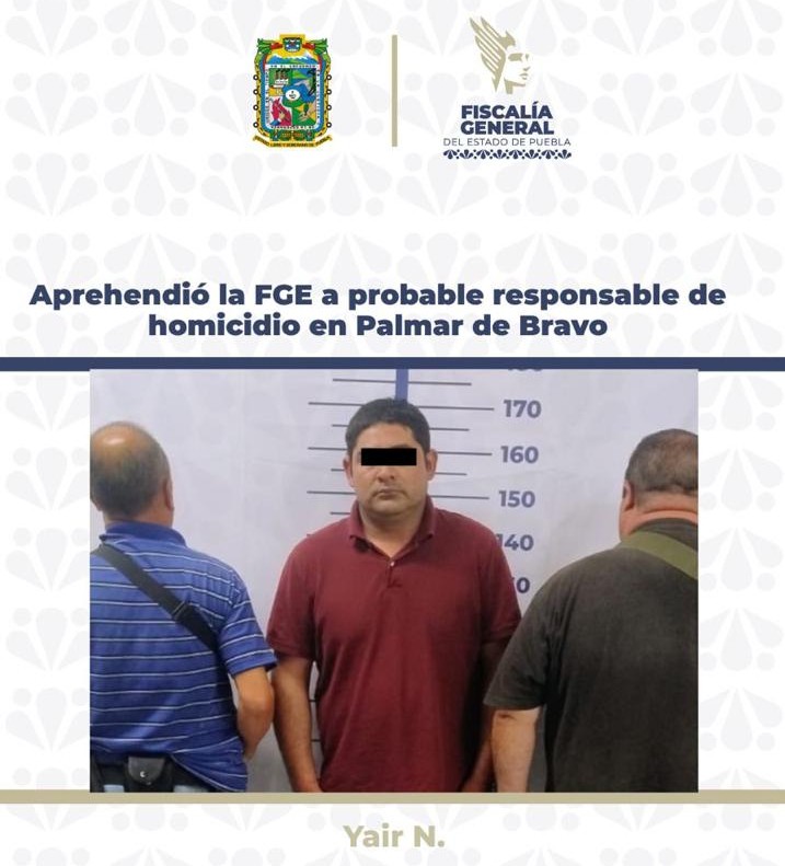 La Fiscalía General del Estado de Puebla cumplimentó una orden de aprehensión en contra de Yahir N., por su probable responsabilidad en el delito de homicidio calificado, en agravio de un hombre en el municipio de Palmar de Bravo.