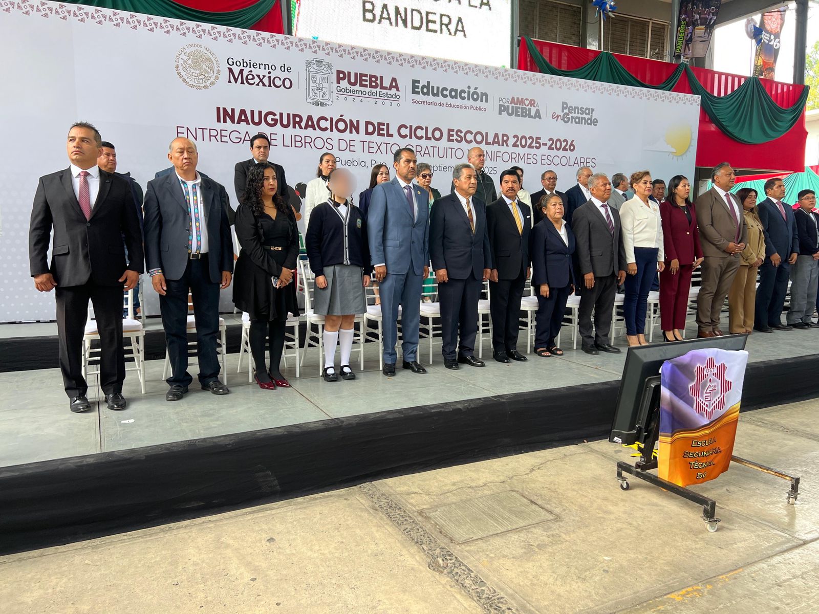 Durante este arranque, se realizó la entrega simbólica de libros de texto gratuitos y uniformes escolares en la Secundaria Técnica No. 56, acto que refleja el compromiso del gobierno estatal por brindar igualdad de oportunidades y apoyar la economía de las familias poblanas.