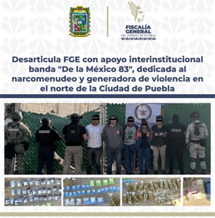 Desarticula FGE con apoyo interinstitucional banda "De la México 83", dedicada al narcomenudeo y generadora de violencia en el norte de la Ciudad de Puebla
