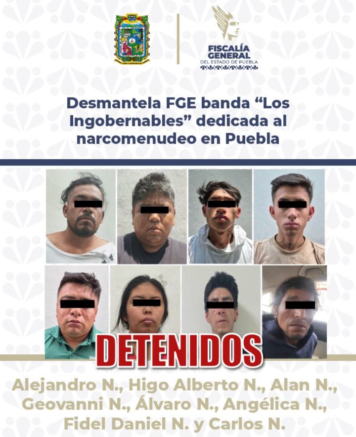 Como resultado de labores de inteligencia e investigación, la Fiscalía General del Estado de Puebla (FGE) desmanteló a una célula delictiva identificada como “Los Ingobernables”, relacionada con la venta y distribución de narcóticos en la zona oriente del municipio de Puebla.