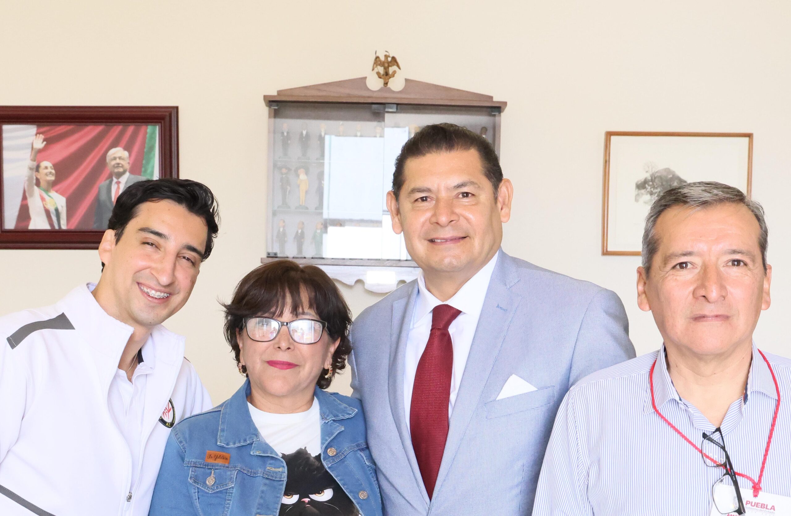 El Gobernador del Estado de Puebla, Alejandro Armenta, acompañado por la secretaria de Deporte y Juventud, Gaby “La Bonita” Sánchez, sostuvieron un emotivo encuentro con el exponente de la gimnasia artística, Diego Neumaier Ortiz, joven poblano de 27 años cuya historia de vida es testimonio de superación, perseverancia y pasión por el deporte.