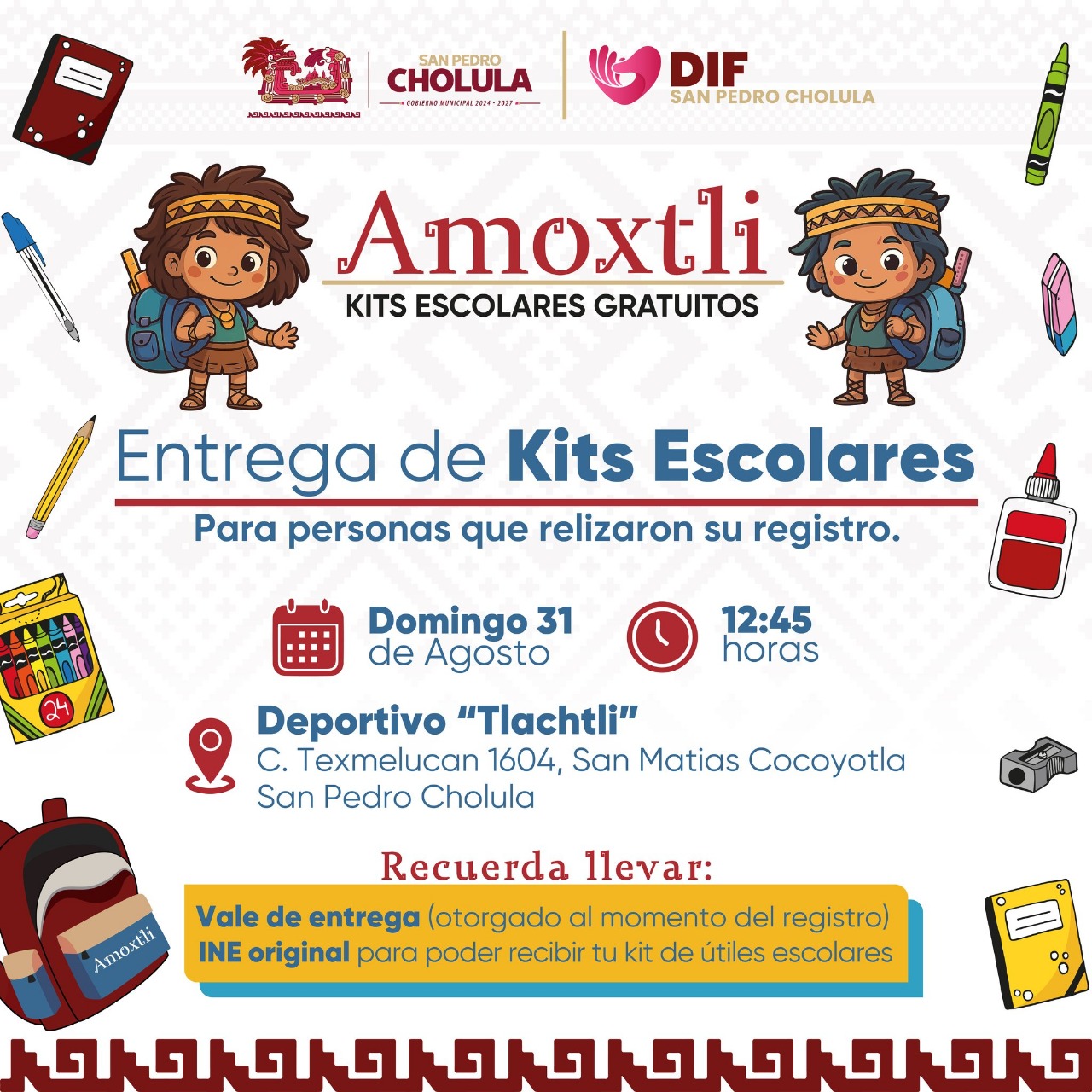 Si realizaste tu registro para el programa Amoxtli, este domingo 31 de agosto te esperamos para que tu pequeña o pequeño reciba su kit de útiles escolares gratuito.