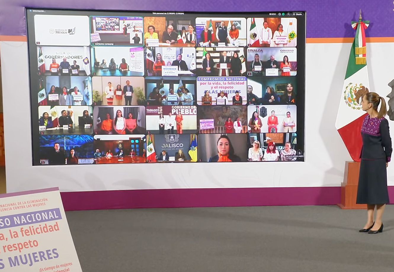 En el Día Internacional de la Eliminación de las Violencias contra las Mujeres, la presidenta de México, Claudia Sheinbaum, encabezó la firma del Compromiso Nacional para Defender a las Mujeres con Perspectiva de Paz y Confianza que reúne a las y los 32 gobernadores. Desde Puebla, Alejandro Armenta participó de manera remota y refrendó su adhesión a esta estrategia federal que busca garantizar a todas las mujeres que no están solas. La presidenta destacó que este acuerdo impulsará la homologación de leyes en cada entidad para fortalecer el acceso a la justicia.