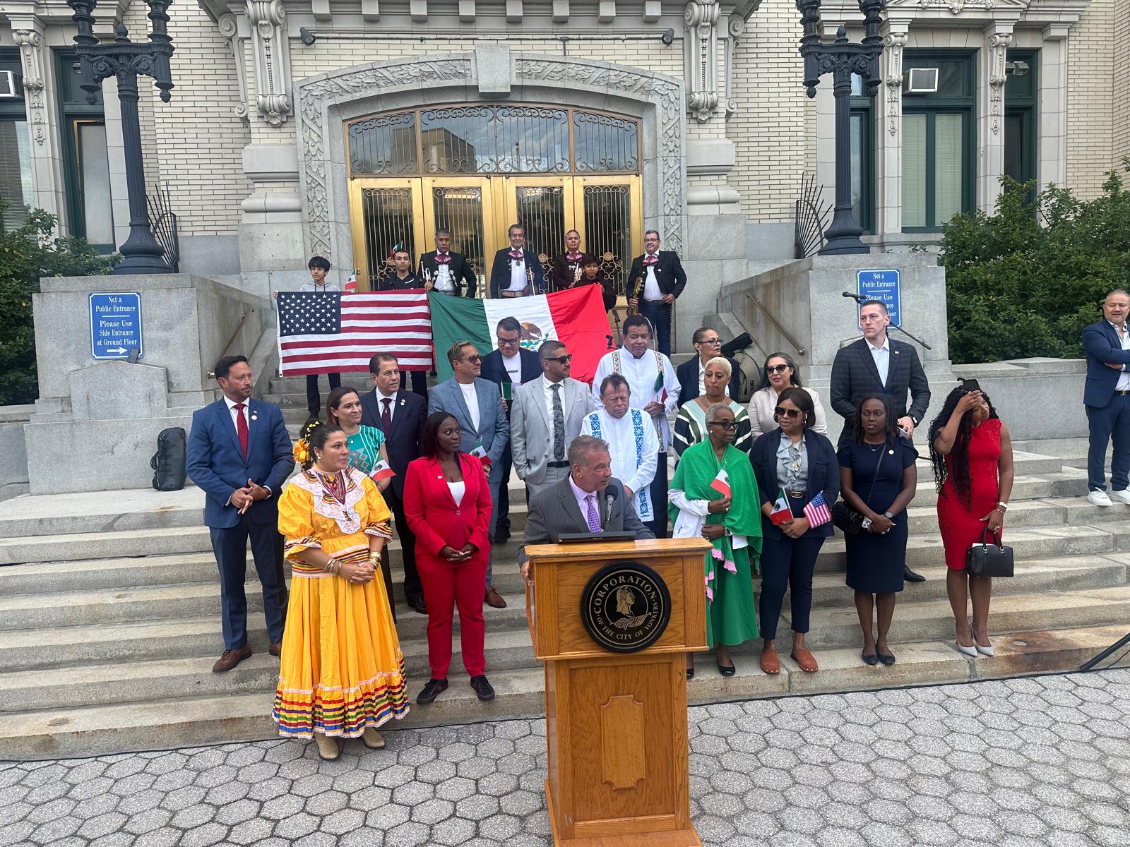 Por otra parte, en las instalaciones del Ayuntamiento de Yonkers, se realizó el izamiento de la bandera de México, en presencia del alcalde Mike Spano, concejales, representantes del Consulado Mexicano y miembros destacados de la comunidad migrante. Durante la conmemoración también se pronunció la arenga que emitió la Presidenta de México, Claudia Sheinbaum.