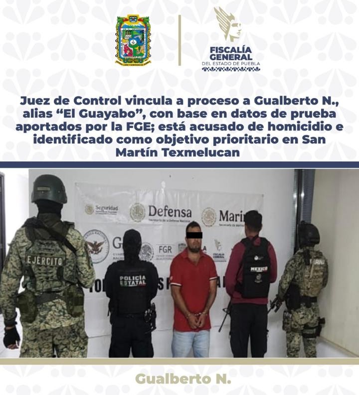 Juez de Control vincula a proceso a Gualberto N., alias “El Guayabo”, con base en datos de prueba aportados por la FGE; identificado como objetivo prioritario en San Martín Texmelucan