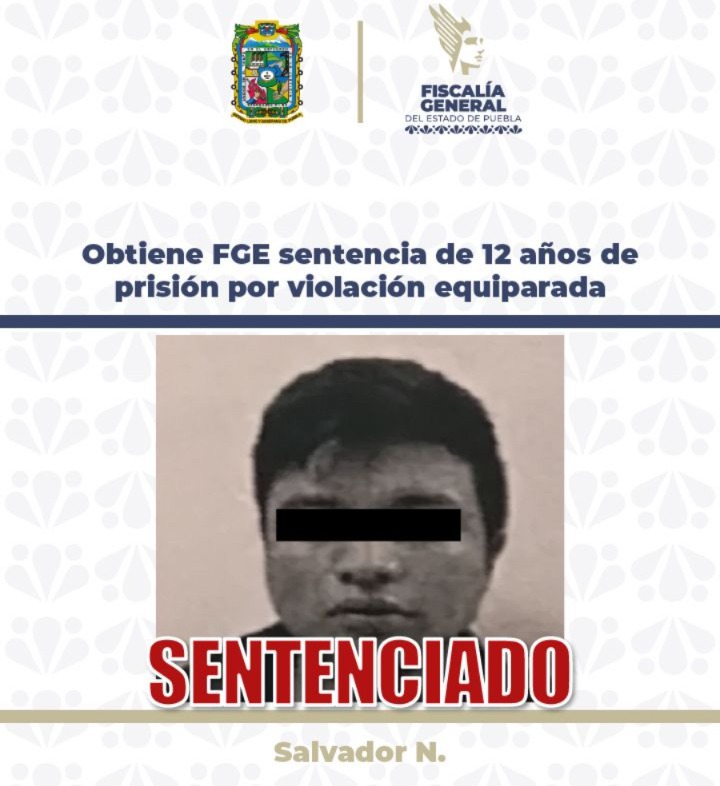 La Fiscalía General del Estado de Puebla obtuvo sentencia condenatoria en contra de Salvador N., responsable del delito de violación equiparada, cometido en agravio de una mujer menor de edad.
