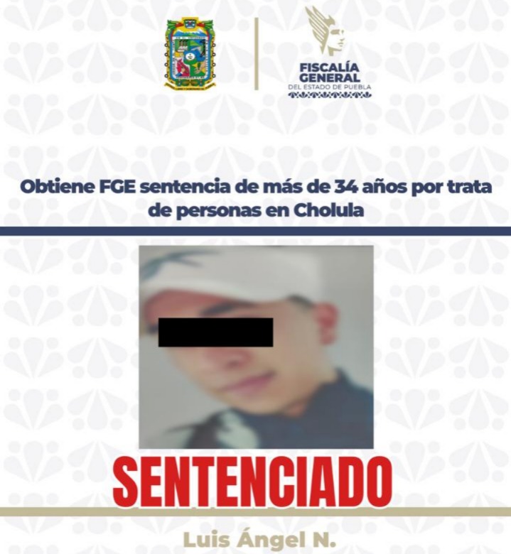 La Fiscalía General del Estado de Puebla (FGE) obtuvo sentencia condenatoria contra un masculino como responsable del delito de trata de personas, por hechos ocurridos en el municipio de San Pedro Cholula.