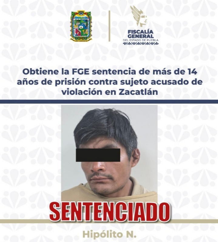 La Fiscalía General del Estado de Puebla obtuvo, mediante la aportación de diversas pruebas, una sentencia de más de 14 años de prisión en contra de Hipólito N., penalmente responsable del delito de violación equiparada, ocurrido en el municipio de Zacatlán.