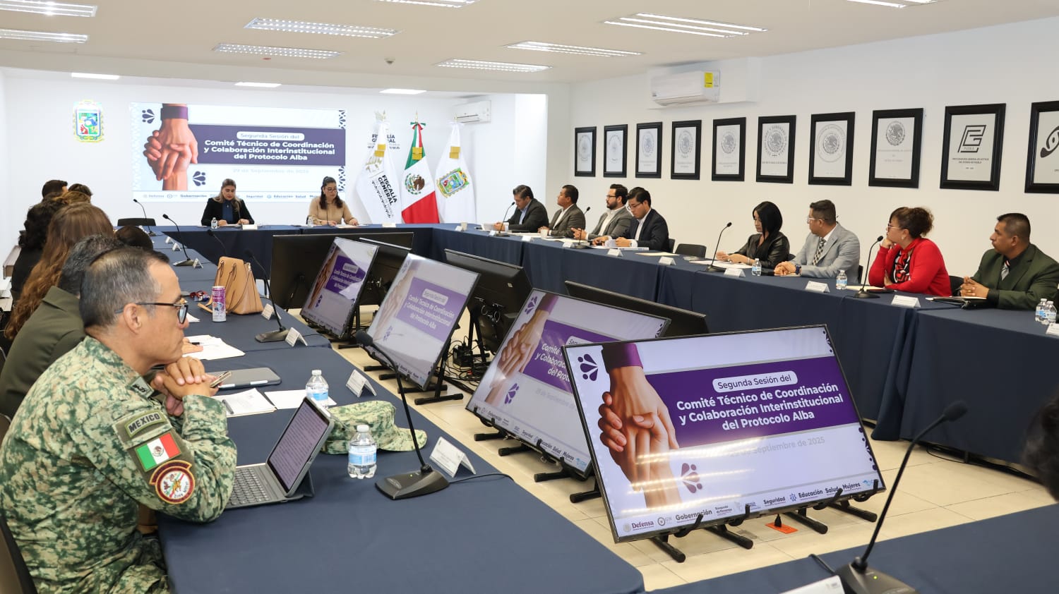 La sesión reunió a representantes de los tres niveles de gobierno, de instituciones educativas y asociaciones civiles que coincidieron en la necesidad de fortalecer las estrategias conjuntas para la operatividad del Protocolo Alba en Puebla