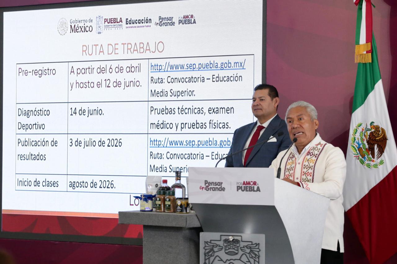 Recordó que, del 6 de abril al 6 de junio, las y los interesados en ingresar al bachillerato podrán consultar la convocatoria en http://www.sep.puebla.gob.mx/, para realizar su preregistro. Informó que el 14 de junio se aplicarán las pruebas técnicas, físicas y el examen médico. Asimismo, señaló que los resultados se publicarán el 3 de julio y que el inicio de clases se llevará a cabo en agosto del presente año.