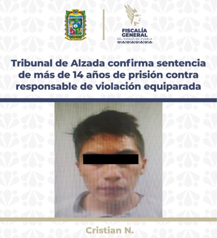 El Tribunal de Alzada confirmó la sentencia de más de 14 años de prisión dictada contra Cristian N., por su responsabilidad penal en el delito de violación equiparada, con base en los argumentos presentados por la Fiscalía General del Estado.